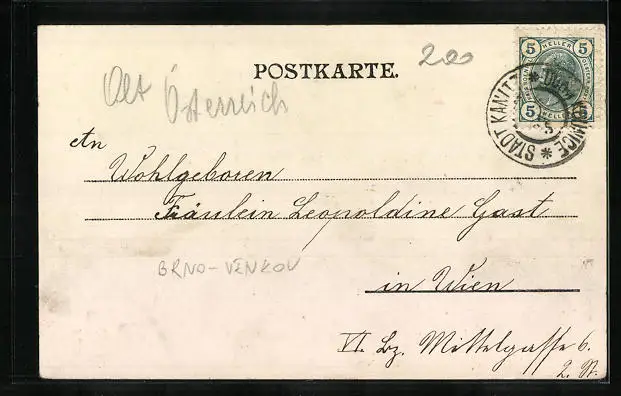 alte Ansichtskarte, gelaufen 1905, guter Zustand