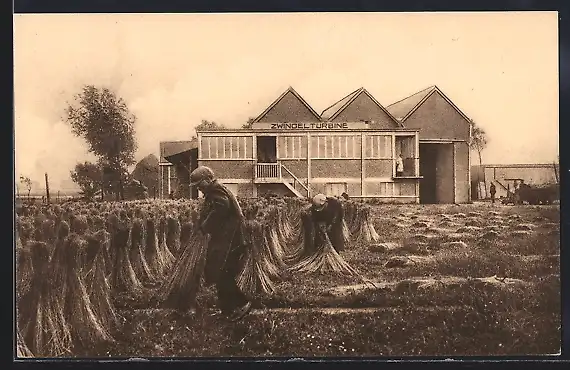 AK Kapellen, Bauer bündelt Flachs