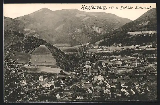 AK Kapfenberg, Ortsansicht mit Bergblick