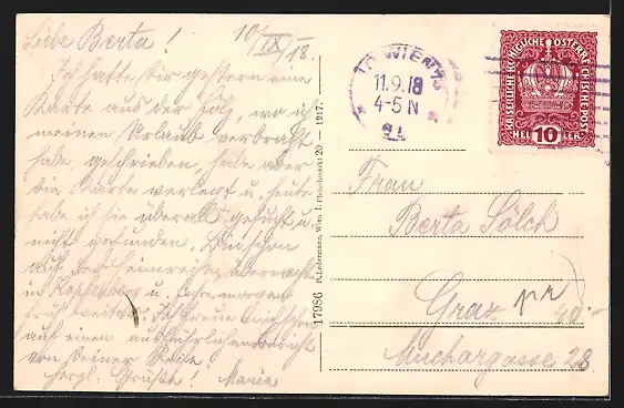 alte Ansichtskarte, gelaufen 1918, guter Zustand