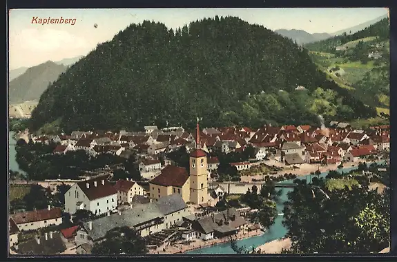 AK Kapfenberg, Ortsansicht mit Kirche am Fluss