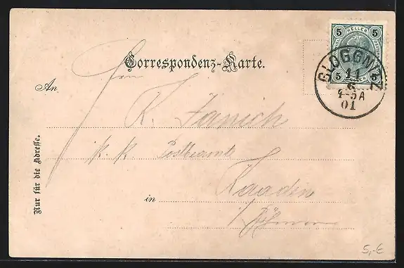 gelaufen 1901, Eckknicke re. und oben li., guter Zustand