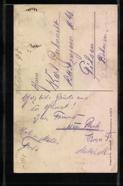 alte Ansichtskarte, gelaufen, Briefmarke entfernt, guter Zustand