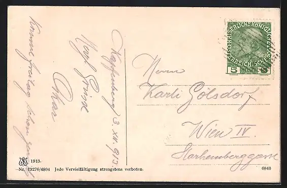 alte Ansichtskarte, gelaufen, Eckknicke re., Bugspur oben li., guter Zustand