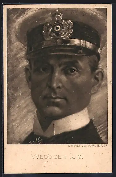 AK Kapitänleutnant Otto Weddigen, Portrait in Uniform mit Mütze