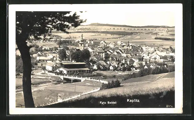 AK Kaplitz /Kaplice, Gesamtansicht mit Scheune