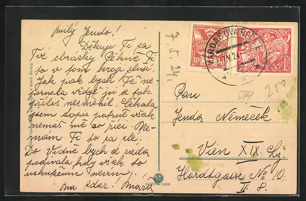 gelaufen 1924, leichter Eckbug rechts oben, guter Zustand