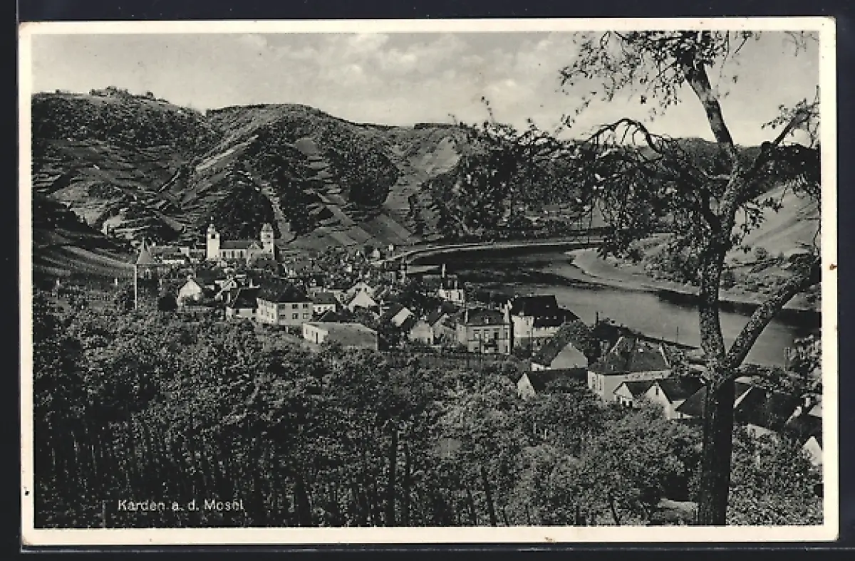 AK Karden a. d. Mosel, Ortsansicht mit Kirche und Mosel
