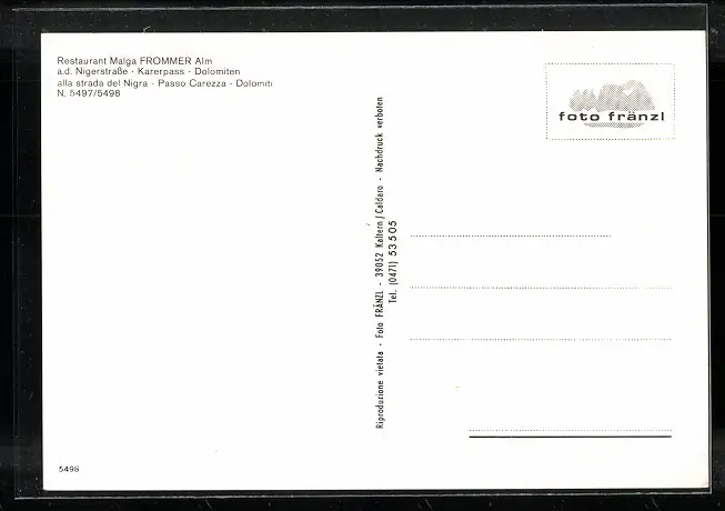 AK Karerpass, Restaurant Malga Frommer Alm a. d. Nigerstrasse