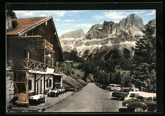 AK Karerpass, Tscheinerhütte mit Gebirgsblick