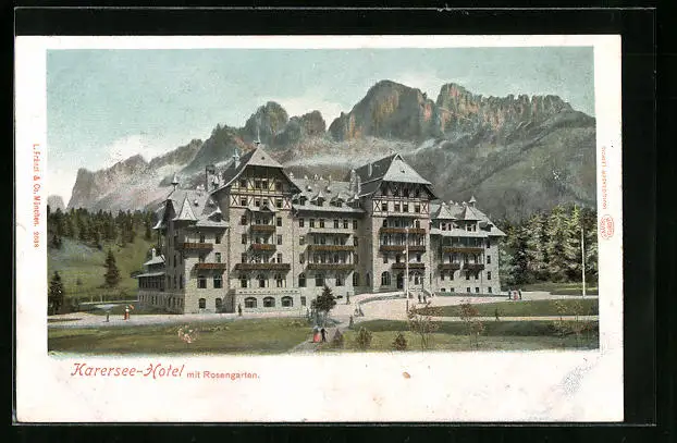AK Karersee, Hotel Karersee mit Rosengarten