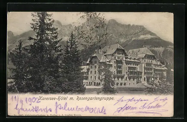 AK Karersee, Hotel mit Rosengartengruppe
