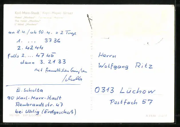 AK Karl-Marx-Stadt, Blick auf das Hotel Moskau