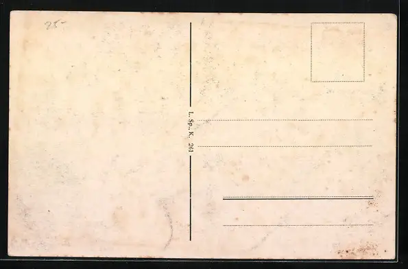 Personenbezogene Daten auf der Rückseite der Karte wurden durch blauen Textmarker unkenntlich gemacht. Die blauen Stellen sind auf die Vorderseite durchgeweicht und wirken sich negativ auf das Postkartenfoto aus