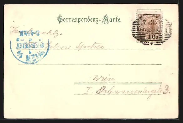 alte Ansichtskarte, gelaufen 1899, Stempelspur, Eckknick re. oben, guter Zustand