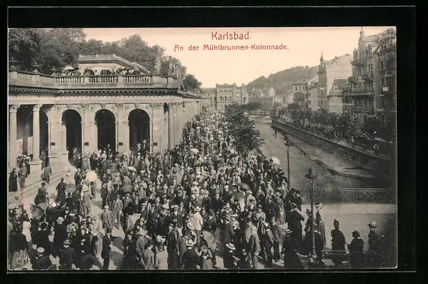 AK Karlsbad, An der Mühlbrunnen-Kolonnade