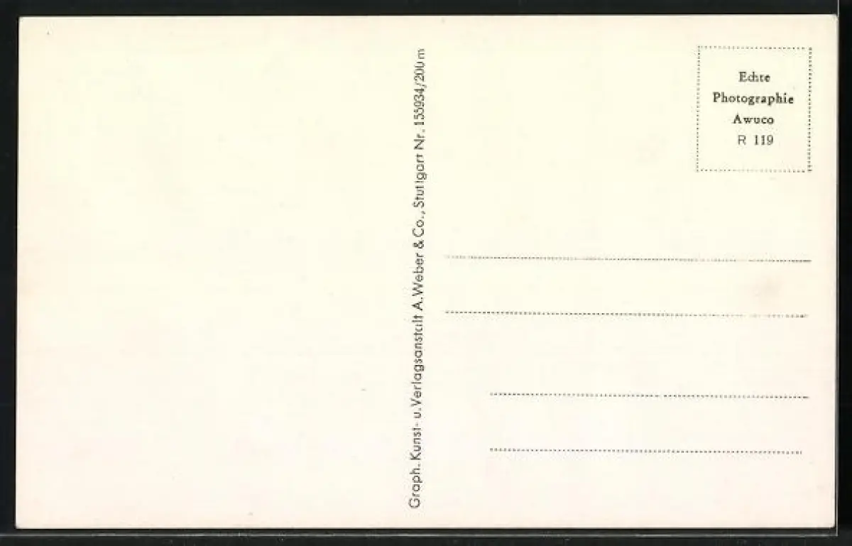 Personenbezogene Daten auf der Rückseite der Karte wurden durch blauen Textmarker unkenntlich gemacht. Die blauen Stellen sind auf die Vorderseite durchgeweicht und wirken sich negativ auf das Postkartenfoto aus