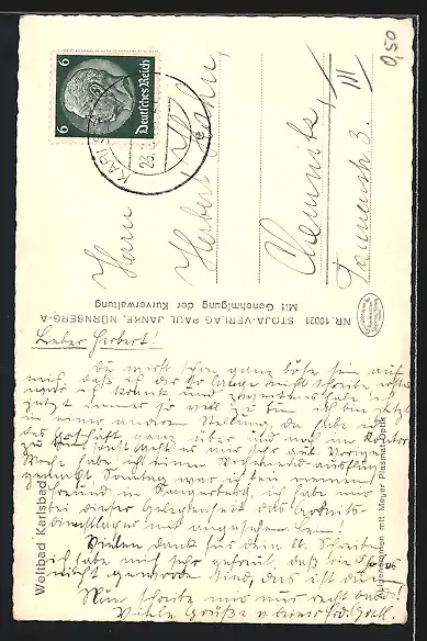alte Ansichtskarte, gelaufen, Bugspuren li. oben, guter Zustand