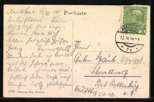 alte Ansichtskarte, gelaufen 1914, guter Zustand