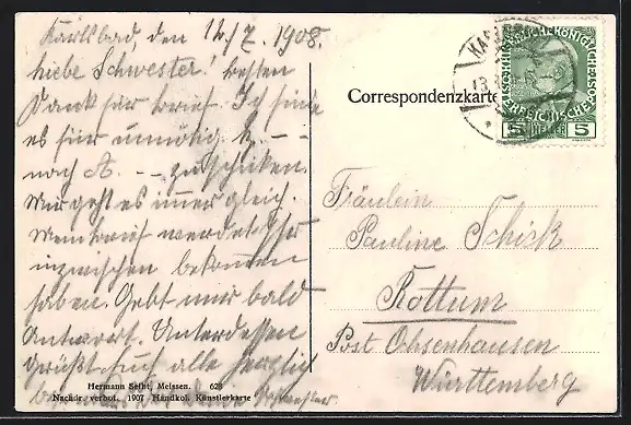 alte Ansichtskarte, gelaufen 1908, guter Zustand