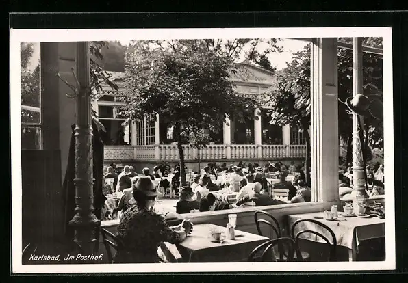 AK Karlsbad, Im Café Posthof
