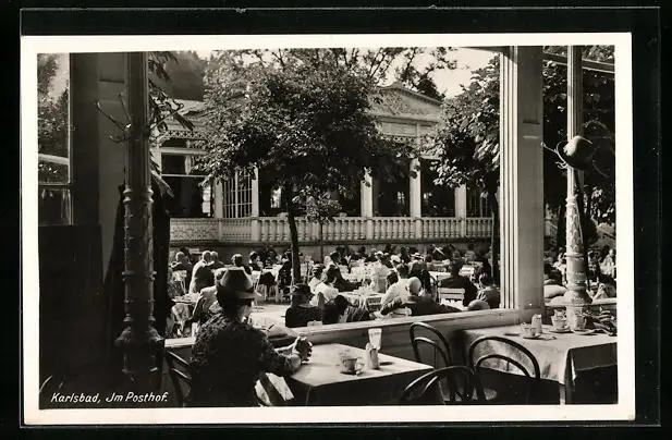 AK Karlsbad, Kundschaft im Gasthaus Posthof