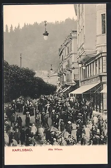 AK Karlsbad, Kurgäste auf der alten Wiese