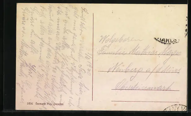 alte Ansichtskarte, gelaufen 1920, Briefmarke entfernt, guter Zustand