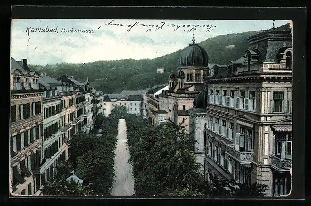 AK Karlsbad, Parkstrasse, Synagoge