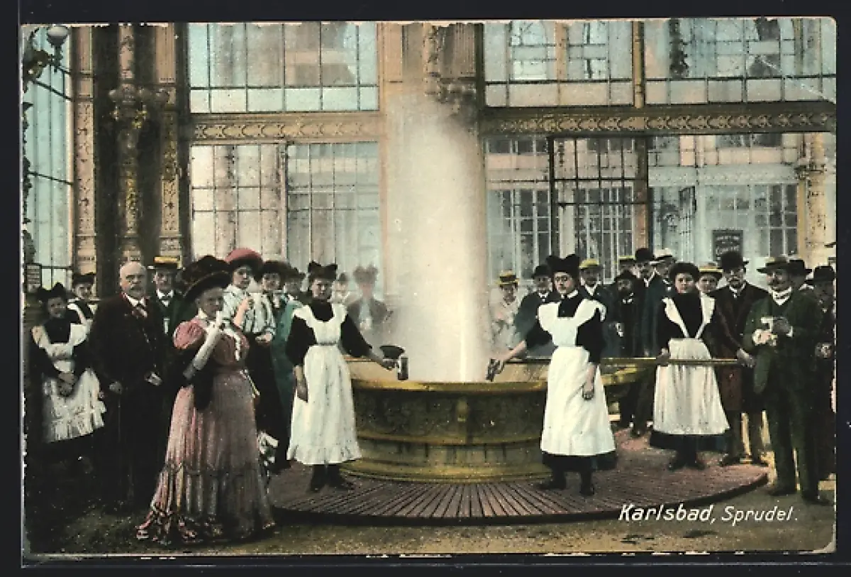 AK Karlsbad, Sprudel mit Kurgästen