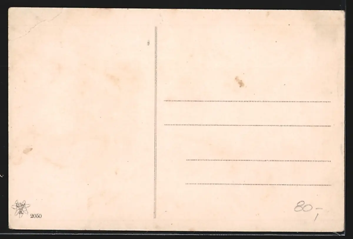 Personenbezogene Daten auf der Rückseite der Karte wurden durch blauen Textmarker unkenntlich gemacht. Die blauen Stellen sind auf die Vorderseite durchgeweicht und wirken sich negativ auf das Postkartenfoto aus