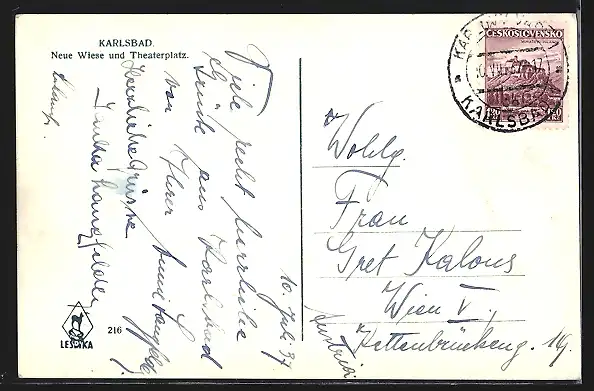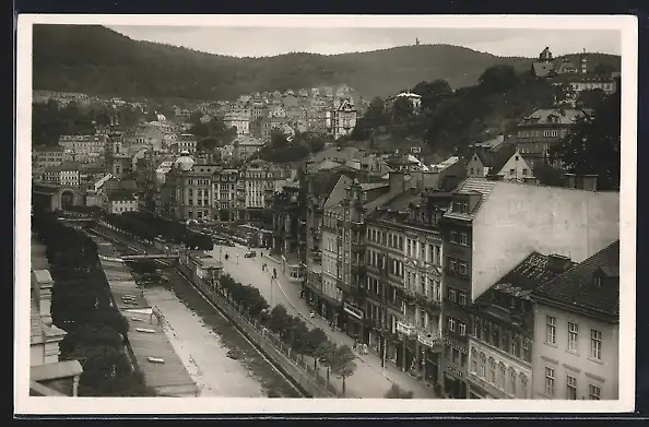 AK Karlsbad, Strassenpartie Neue Wiese und Theaterplatz