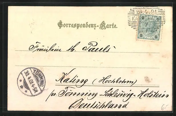 alte Ansichtskarte, gelaufen 1901, guter Zustand