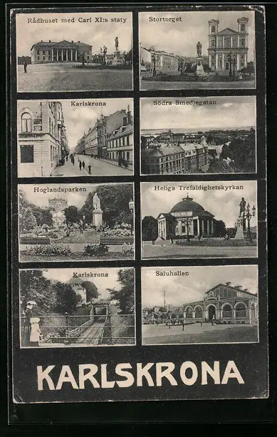 AK Karlskrona, Radhuset med Carl XI. staty, Stortorget, Hoglandsparken