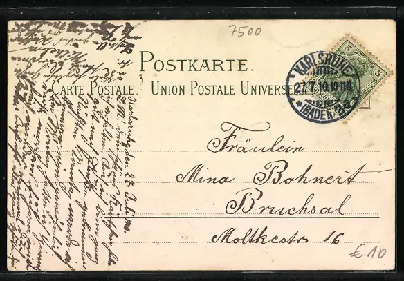 alte Ansichtskarte, gelaufen 1910, guter Zustand