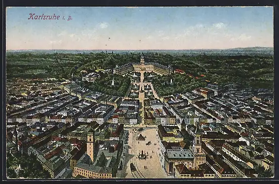 AK Karlsruhe, Ansicht aus der Vogelschau
