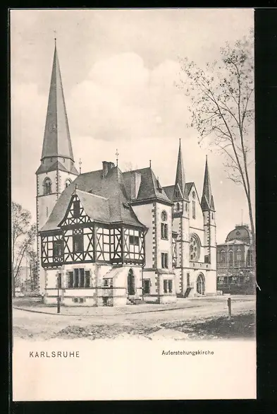 AK Karlsruhe, Ansicht der Auferstehungskirche