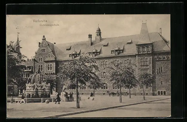 AK Karlsruhe, Ansicht der Gutenbergschule