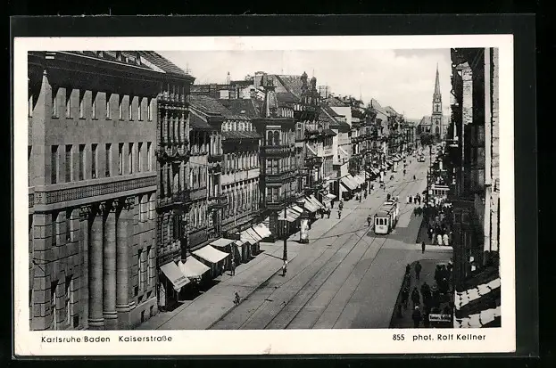 AK Karlsruhe /Baden, Strassenbahn in der Kaiserstrasse