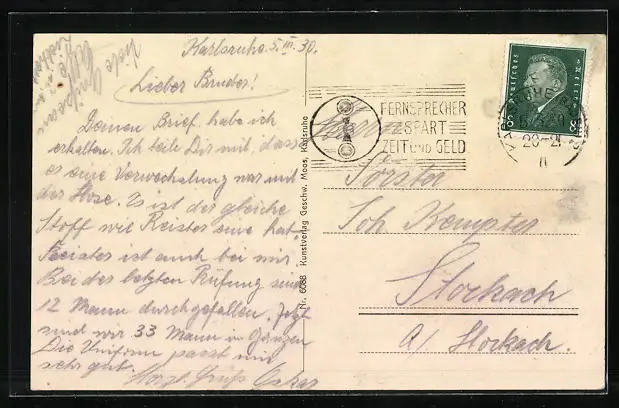 alte Ansichtskarte, gelaufen 1930, Eckknick oben li., Stempelspur, guter Zustand