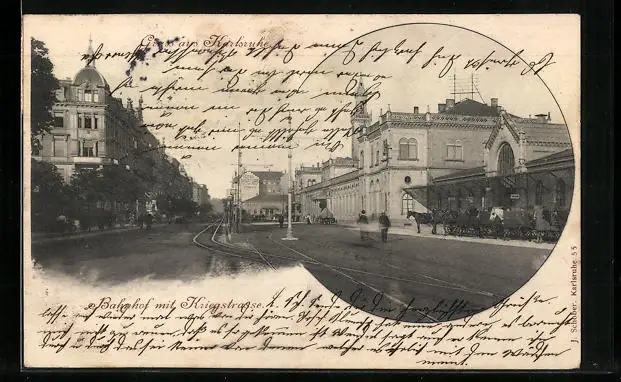 AK Karlsruhe, Bahnhof mit Kriegstrasse
