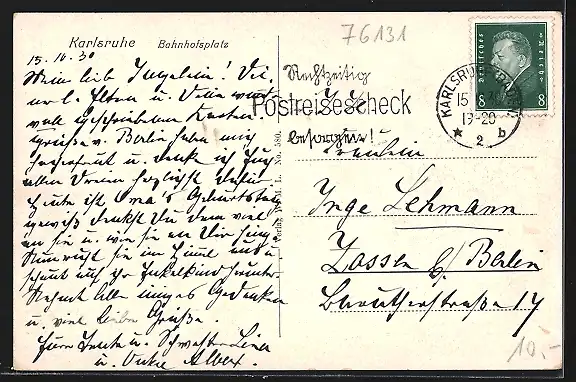 alte Ansichtskarte, gelaufen 1930, guter Zustand