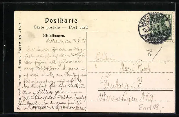 alte Ansichtskarte, gelaufen 1907, Stempelspur, guter Zustand