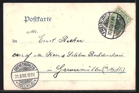 alte Ansichtskarte, gelaufen 1903, Eckknick li. unten, guter Zustand