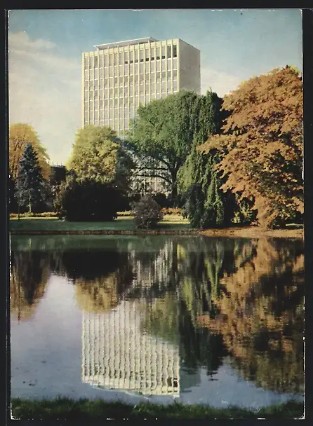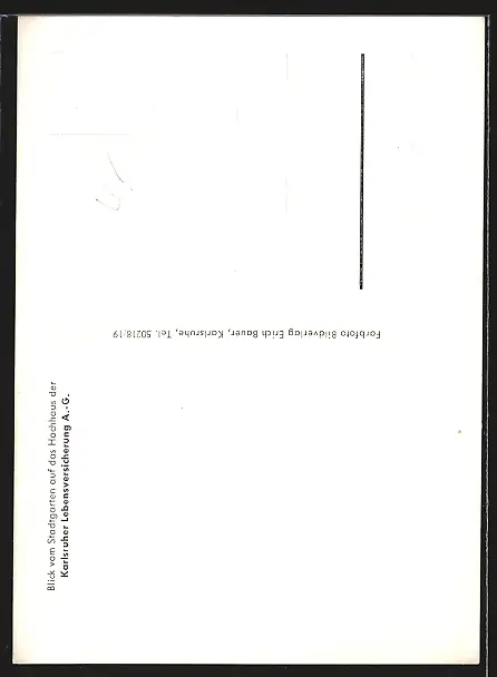 AK Karlsruhe, Blick vom Stadtgarten auf das Hochhaus