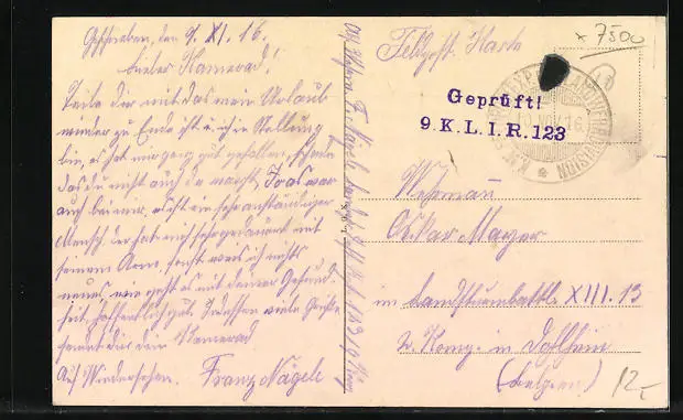 alte Ansichtskarte, gelaufen 1916 als Feldpost, guter Zustand