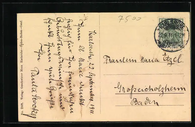 alte Ansichtskarte, gelaufen 1911, guter Zustand