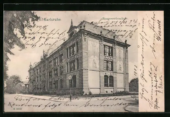 AK Karlsruhe, Blick zur Baugewerbeschule