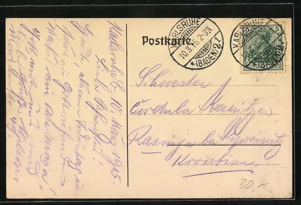 alte Ansichtskarte, gelaufen 1915, Stempelspur, guter Zustand