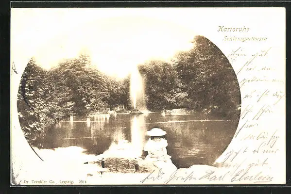 AK Karlsruhe, Brunnenfontäne am Schlossgartensee